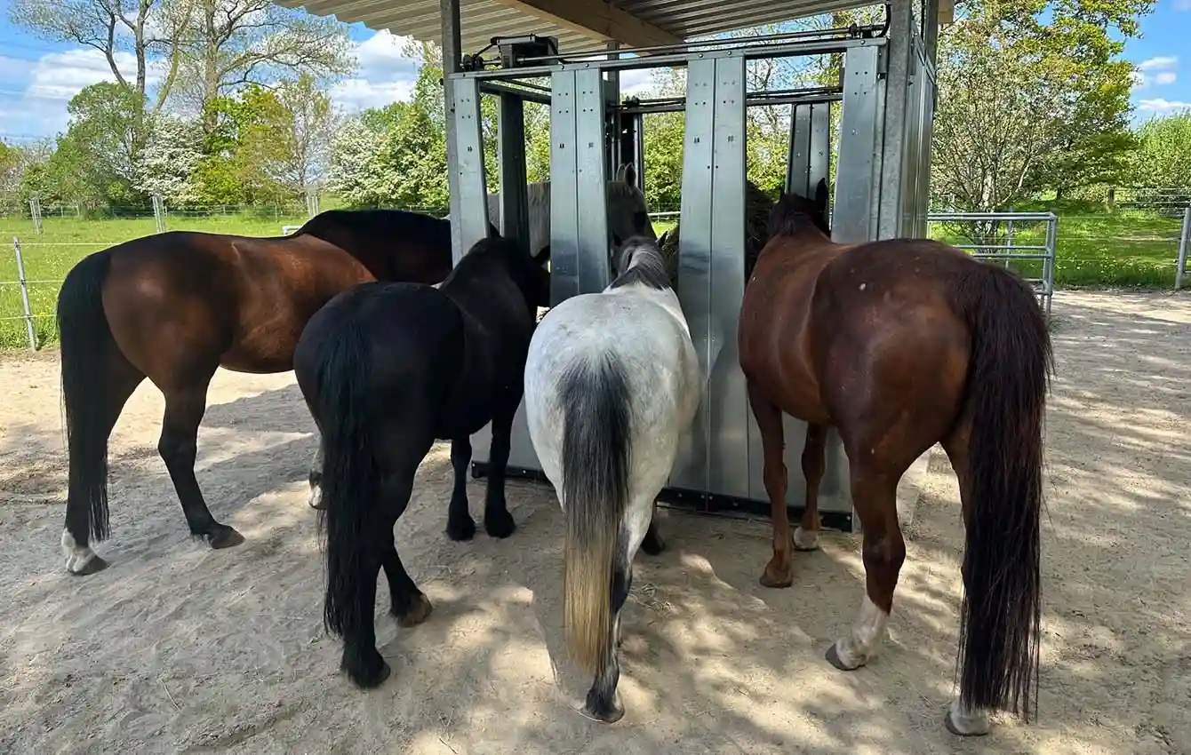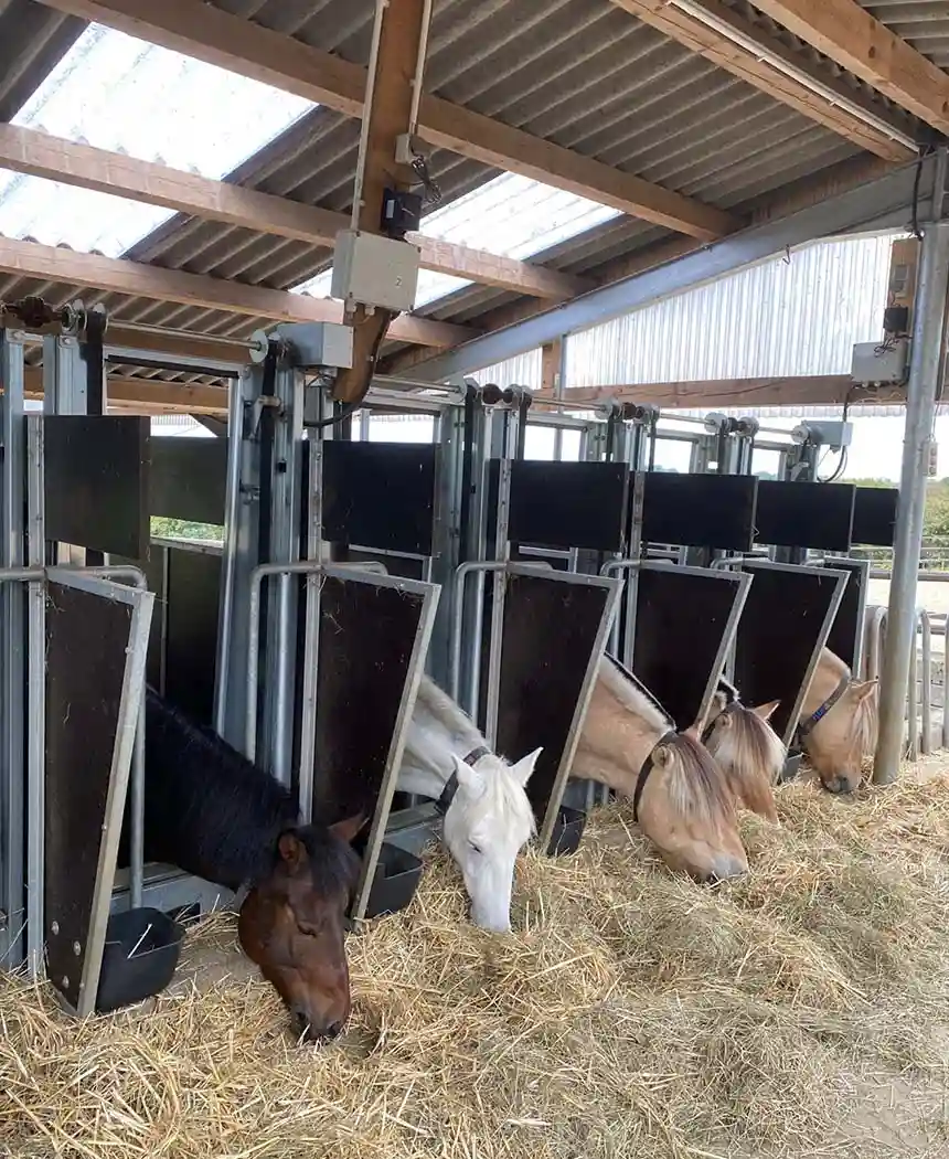 På många hästanläggningar har det visat sig gynnsamt att planera för betydligt fler ätplatser än antalet hästar i gruppen. Detta stöds av vetenskapliga studier som rekommenderar ett djur:ätplats-förhållande på upp till 1:2.